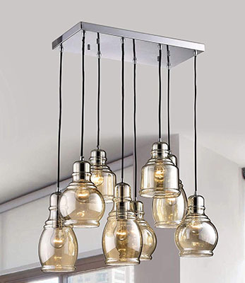 | Product description | Brighten your room with this elegant pendant light. The chandelier features beautiful glass globes suspended from a rectangular-shaped base for a modish twist on a classic fixture. Consider picking up an extra one for your vacation home or adding one as a thoughtful gift. |